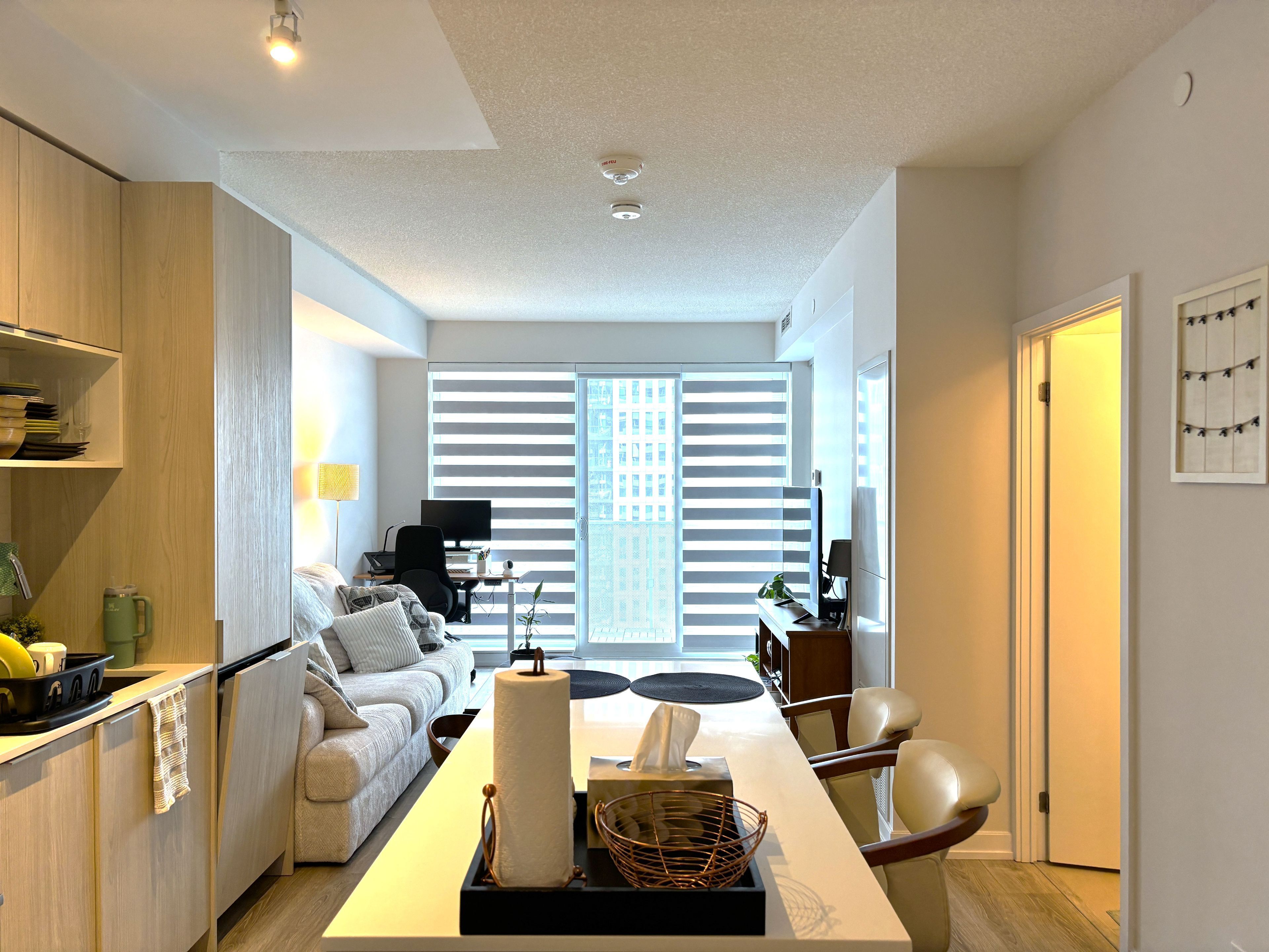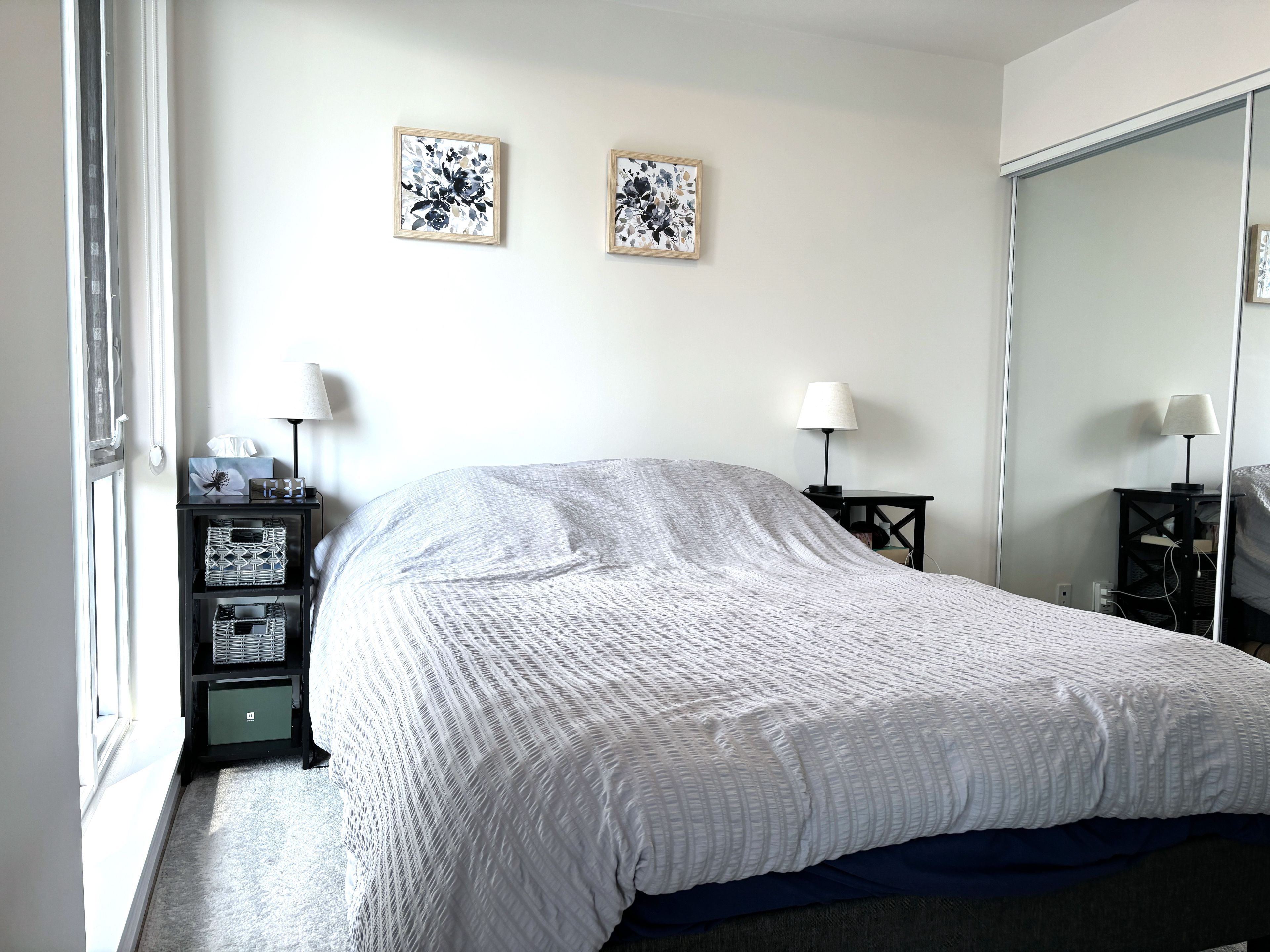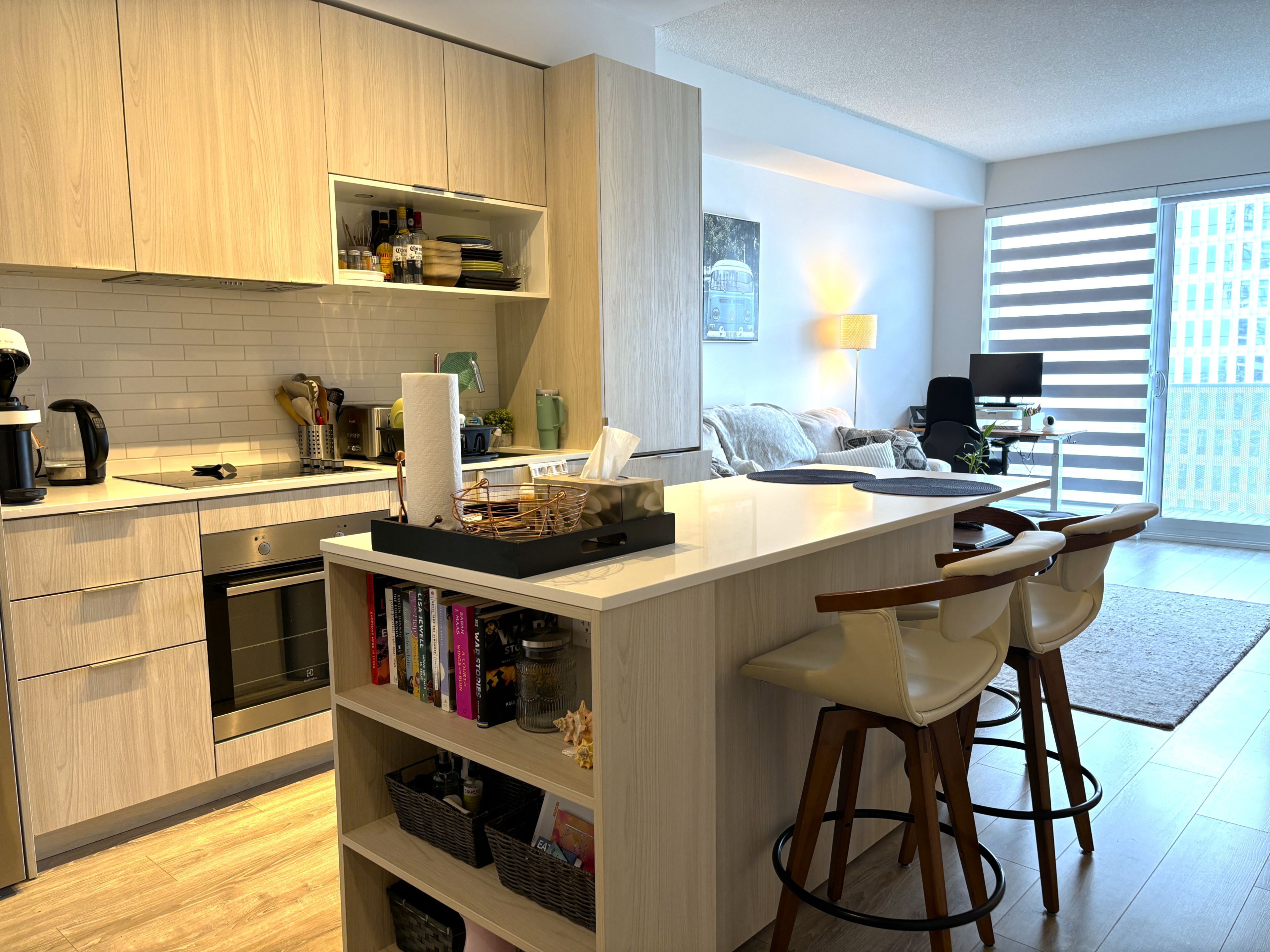 Welcome to the Wyatt! This 1 bedroom plus den features floor to ceiling windows and plenty of natural light, an oversized balcony, laminate floors, a centre island for extra counter space and storage. The den is large enough to be used as a bedroom or an office. Building amenities include 24 hour concierge/security, exercise facilities, party room and roof top garden among others. Close to transit, schools, shopping, parks and more. Near perfect walk, bike and transit score make this an excellent location to call your home! Please note that photos in this listing were from a prior occupancy. The unit is currently vacant. 1 parking and 1 locker included. Unit has been professionally cleaned.