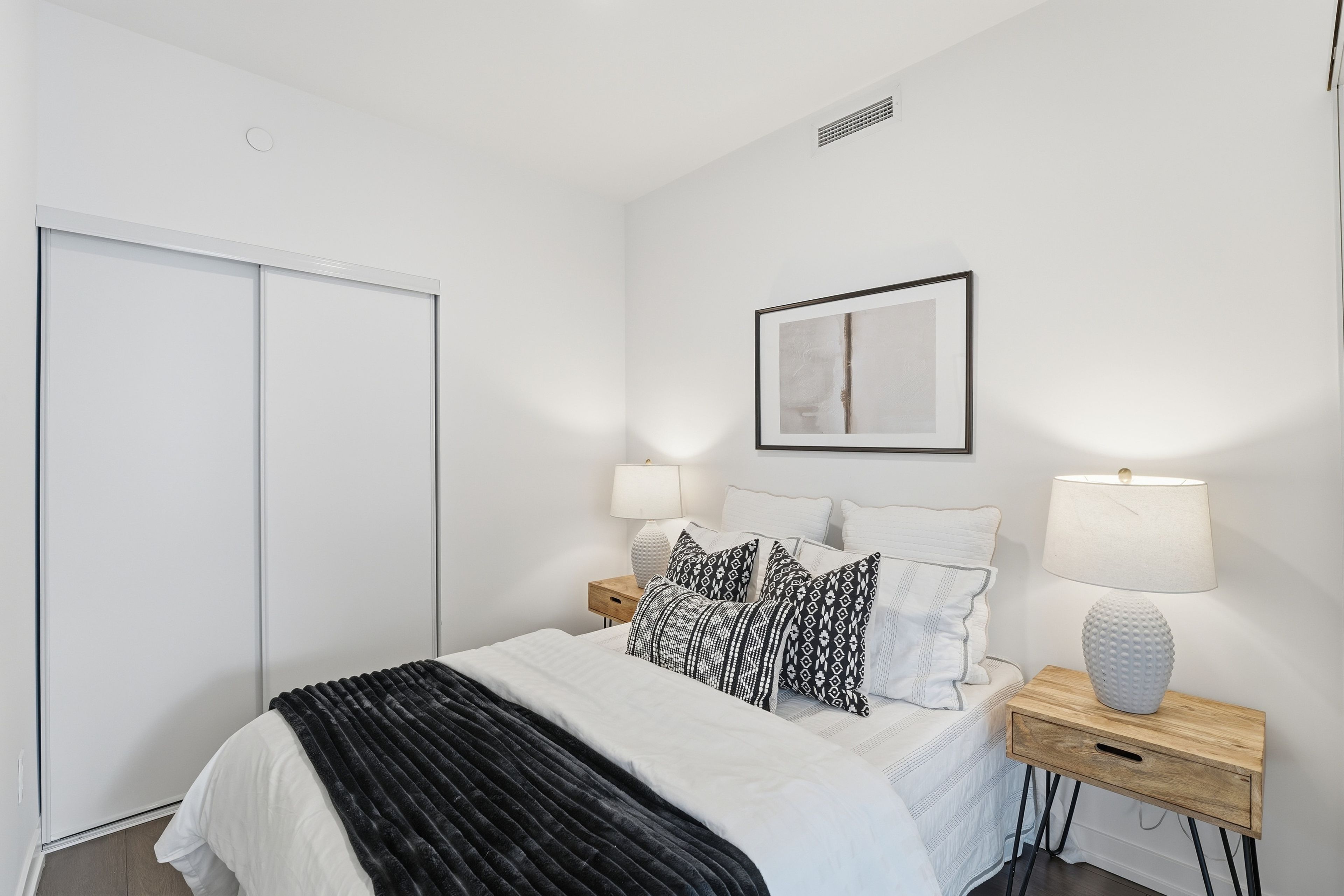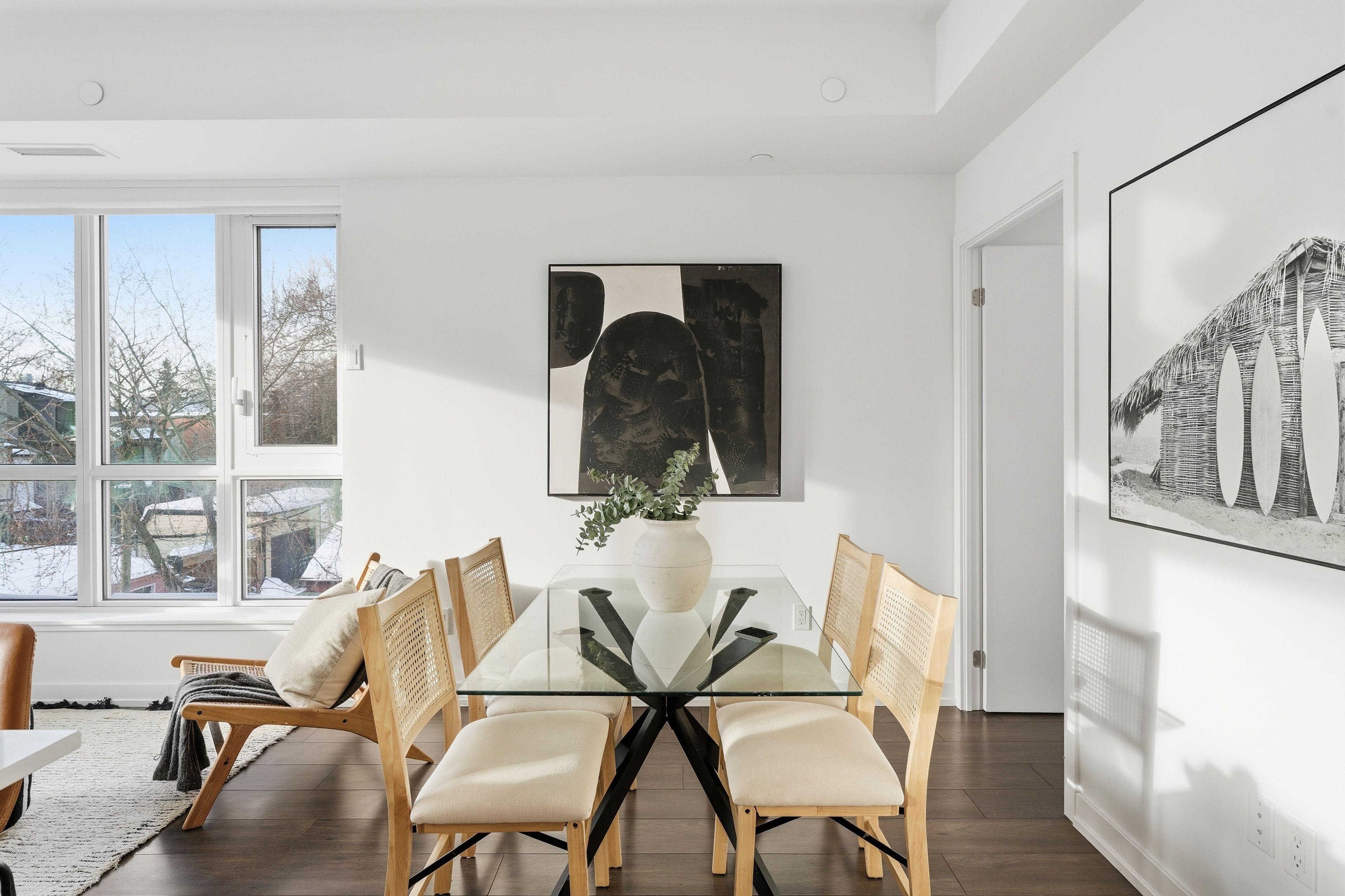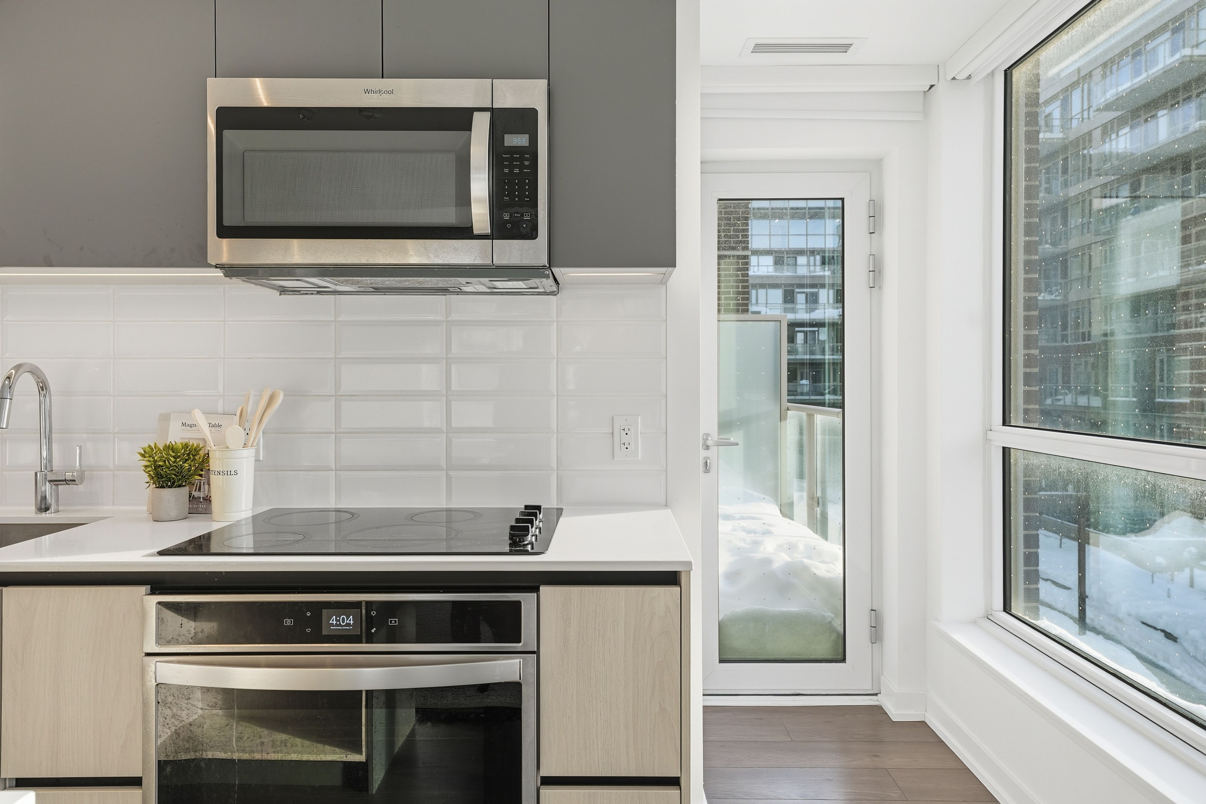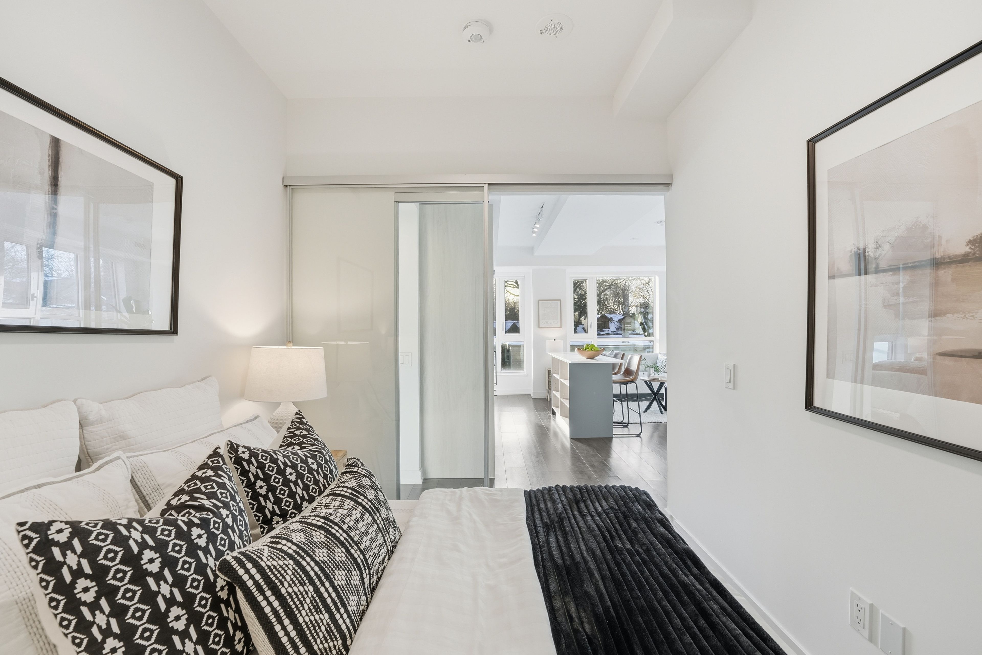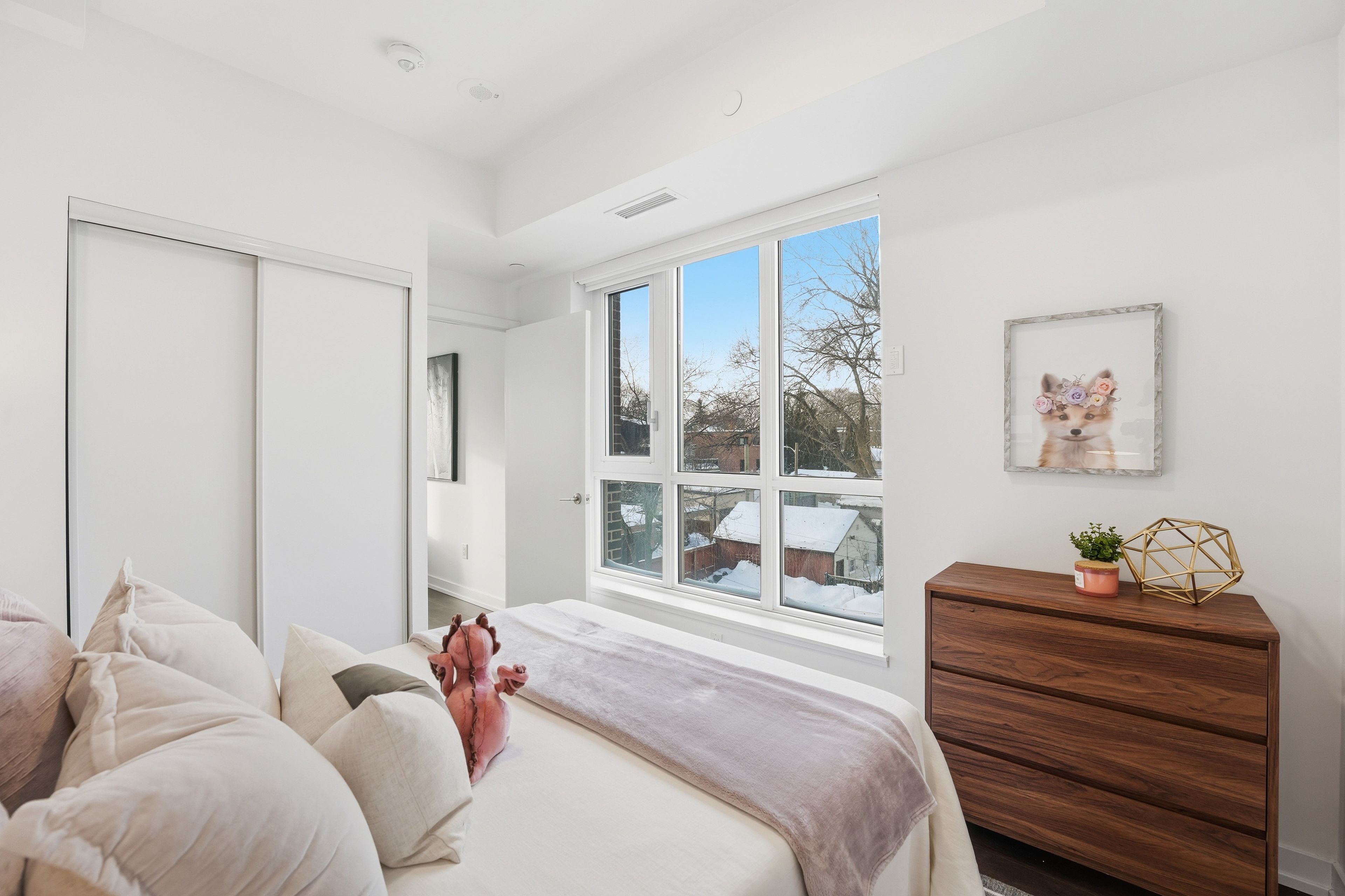 Stylish & quiet 3-bedroom, 2-bathroom corner suite with underground parking & locker in Leslieville's iconic Wonder lofts, formerly the historic Weston Bakery. Highly functional layout with 9 ft smooth ceilings, abundant natural light, and west-facing exposure with north and south exposures. Contemporary two-tone chef's kitchen features integrated stainless steel appliances, white quartz countertops, under-cabinet lighting, undermounted sink, and a generous island that doubles as a breakfast bar . Flint Oak wide plank laminate flooring throughout. Primary bedroom includes a 4-piece ensuite. Second bathroom is a 4-piece with a deep soaker tub. The second bedroom works beautifully as a spacious home office with glass sliding doors and great natural light. The third bedroom features north-facing windows with sunlight throughout the day and motorized blackout roller blinds. Remote-controlled day shade blinds are also installed in the living area, and blackout in primary bedroom. Enjoy world-class amenities including a rooftop deck with unobstructed views and BBQs, fire pit, gym, concierge, co-working space with WiFi, indoor family and children's playroom, pet wash, and bike storage. Unbeatable location just steps to the best stretch of Queen Street East, with top-tier restaurants, independent boutiques, lively patios, transit, and excellent schools nearby. Ideal for a work-from-home couple or a growing family. A rare blend of style, comfort, and urban convenience in one of Toronto's most dynamic neighborhoods. A must see!